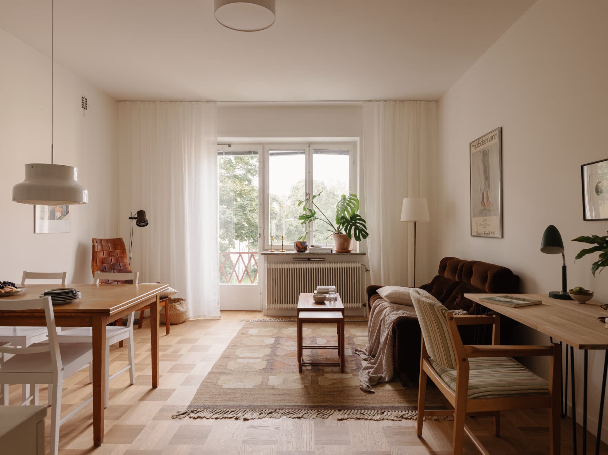 Lugnt belägen på en stillsam återvändsgata finner du denna ljusa genomgångslägenhet med fri utsikt och grönska utanför varje fönster. Tack vare ljusinsläpp från två väderstreck flödar solen genom hemmet hela dagen – morgonsolen väcker kök och sovrum medan eftermiddagsljuset vilar över vardagsrummet. Köket och ytskikt är 2021/2022 renoverat med byggnadsvård som ledstjärna, där originalinredningen bevarats och kompletterats med platsbyggda skåp i massivt trä som erbjuder både modern komfort och rikligt med förvaring. Här bor du i en trygg och lågt belånad förening med stark ekonomi.