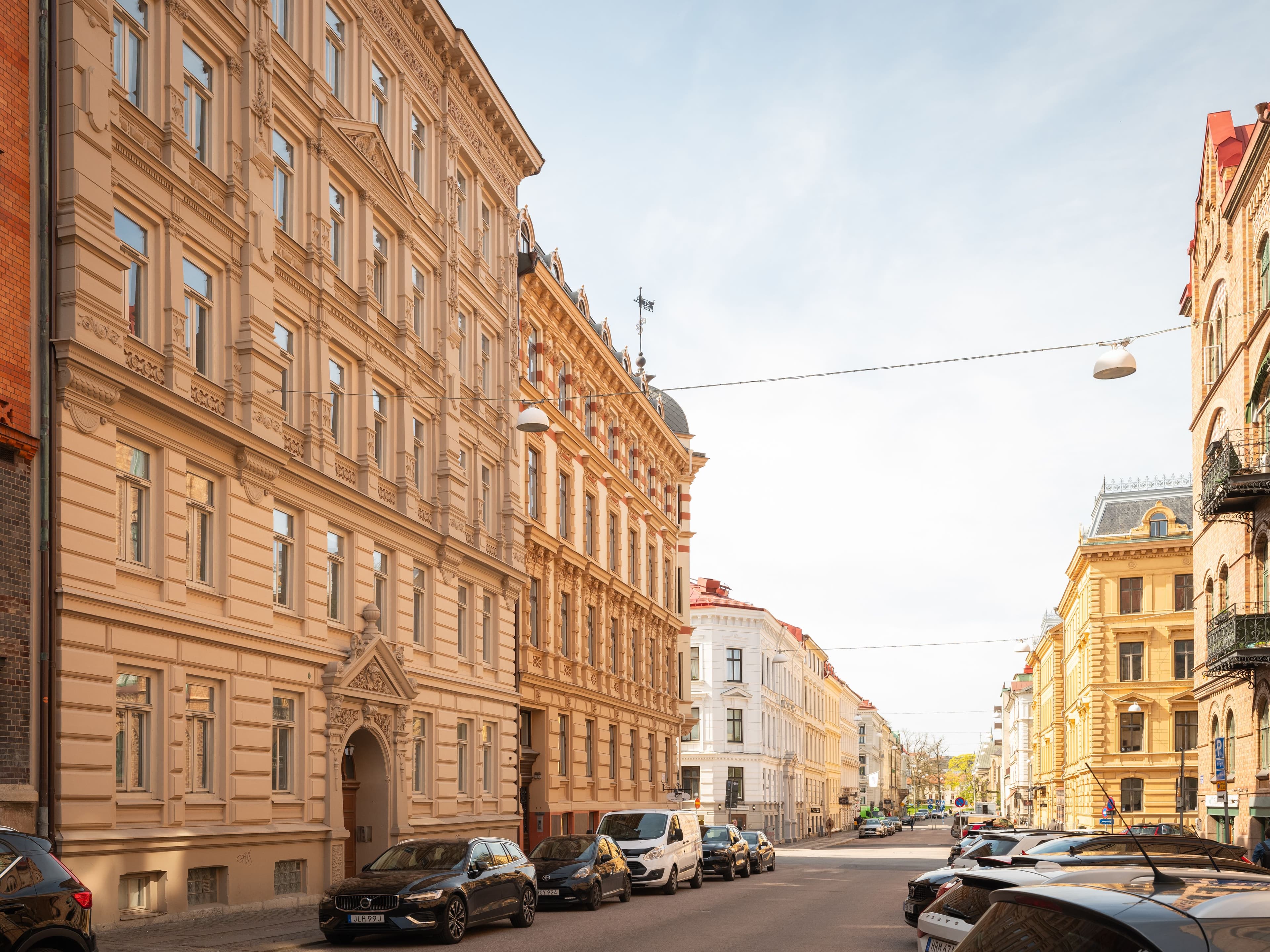 En nyhet var stora butiksfönster i bottenvåningen. Den nya möjligheten att blåsa större glas gjorde även lägenhetsfönstren större. Utsmyckningarna hade anknytning till antiken och pilastrar, frontoner och kolonner användes liksom profilerade lister mellan våningar. Ett tandsnitt under den obrutna takfoten var också vanligt. Dekorationerna var rejäla och fasaderna fick genom dem en spännande och livfull skuggverkan. Takfallen var flacka och klädda med svart- eller rödmålad, falsad plåt.