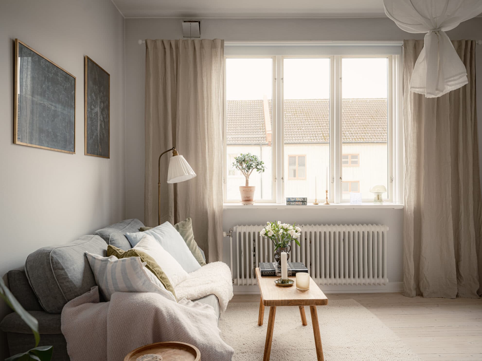 Fina originalfönster i motsatta väderstreck fyller denna mysiga landshövdingehusetta med ljus. Takhöjden är luftig och tack vare sin yteffektiva planlösning känns lägenheten större än vad antalet kvadratmeter anger. Brädgolven är framtagna och de bevarade originaldetaljerna – fönster, spegeldörrar, garderober med mera – ger en charmig inramning.