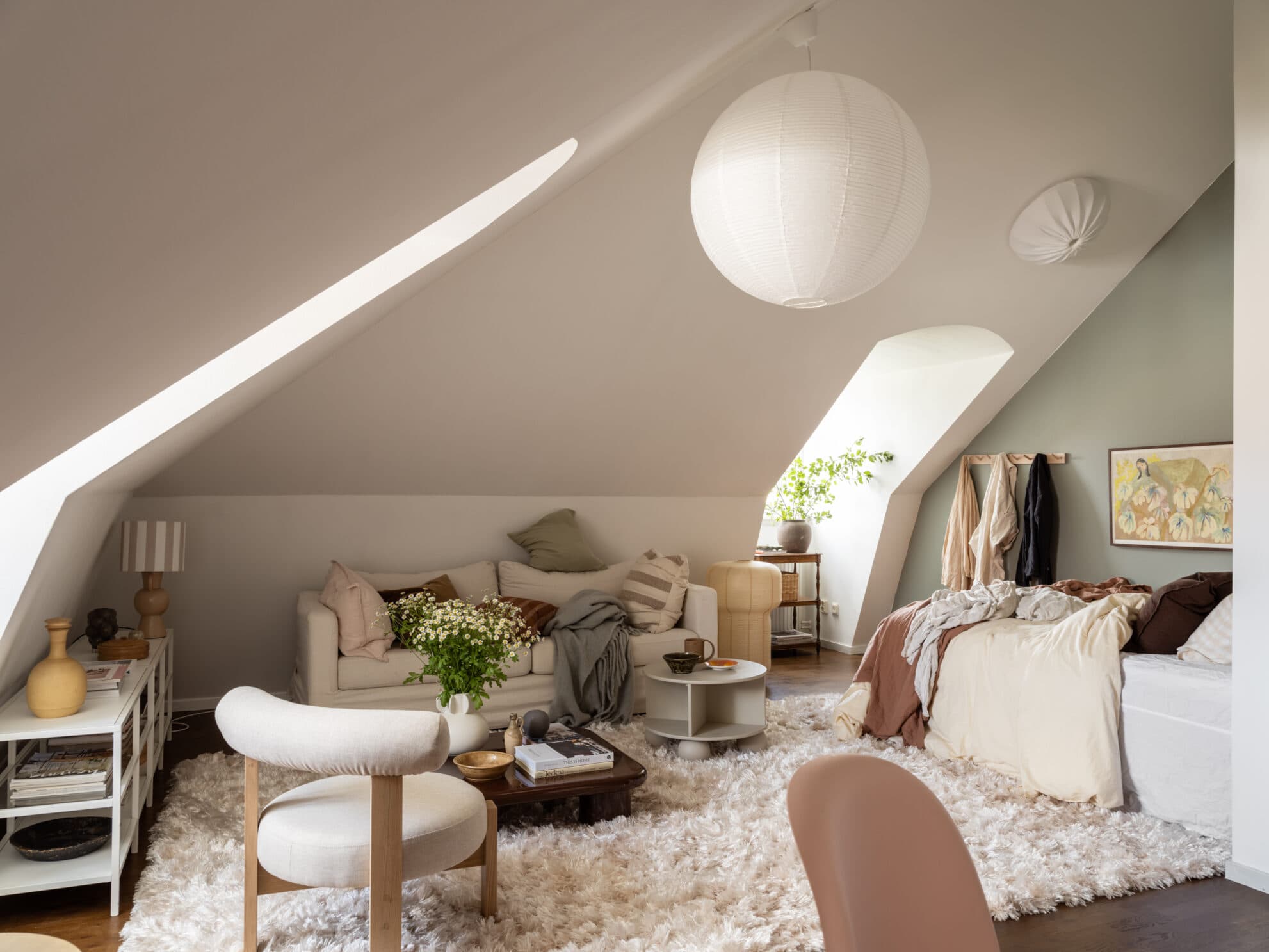 Charmig vindslägenhet med härligt ljusinsläpp och fri utsikt