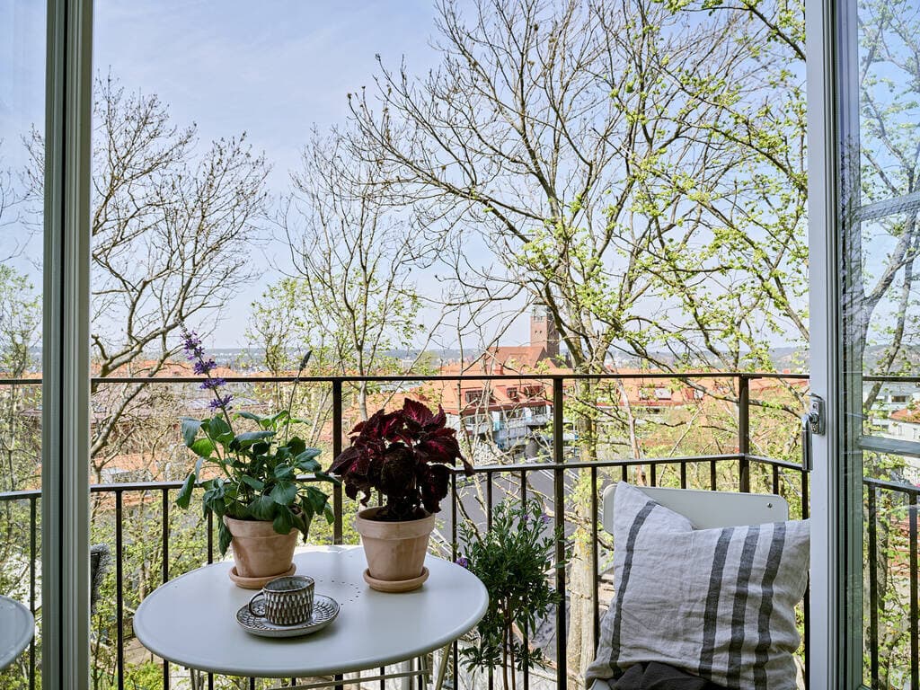 Landshövdingehusetta med solig balkong och vacker utsikt