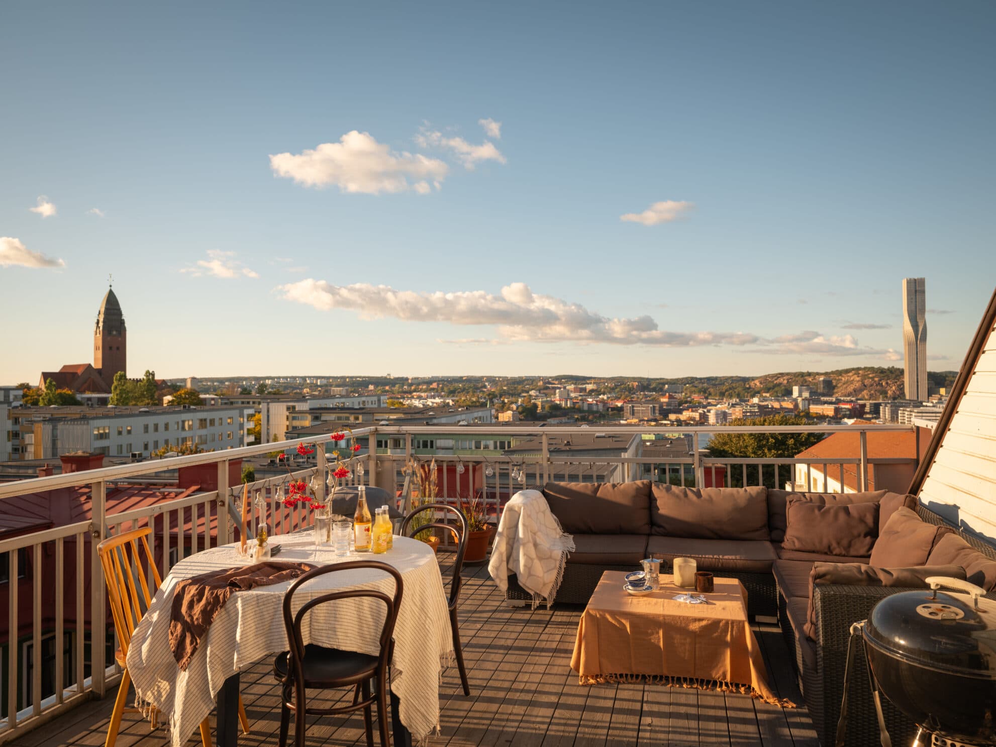 På taket till uppgång 11 finns en stor takterrass med vidsträckt utsikt över staden och hamninloppet. Här finns trevliga loungemöbler samt grill som möjliggör samvaro med grannar eller vänner under den varma årstiden. Föreningen erbjuder också sina medlemmar tillgång till bastu, festlokal, övernattningslägenhet samt snickarrum och flera cykel- och barnvagnsförråd.