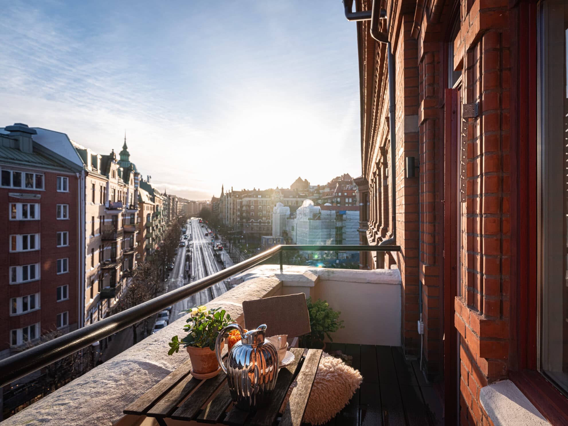 Huset ligger i hjärtat av Linné, och utanför portarna myllrar det av kaféer, restauranger och spännande boutiquer. I grannskapet hittar man även Saluhallen Briggen, Hagabion och Linnés fina bibliotek. Tredje Långgatans trendiga restaurangstråk finns liksom mysiga Haga runt hörnet, och strax söderut breder Slottsskogen ut sig med sin natur. Kommunikationerna är utmärkta och Prinsgatans hållplats, endast hundra meter från lägenheten, trafikeras av flera spårvagns- och busslinjer med täta turer.