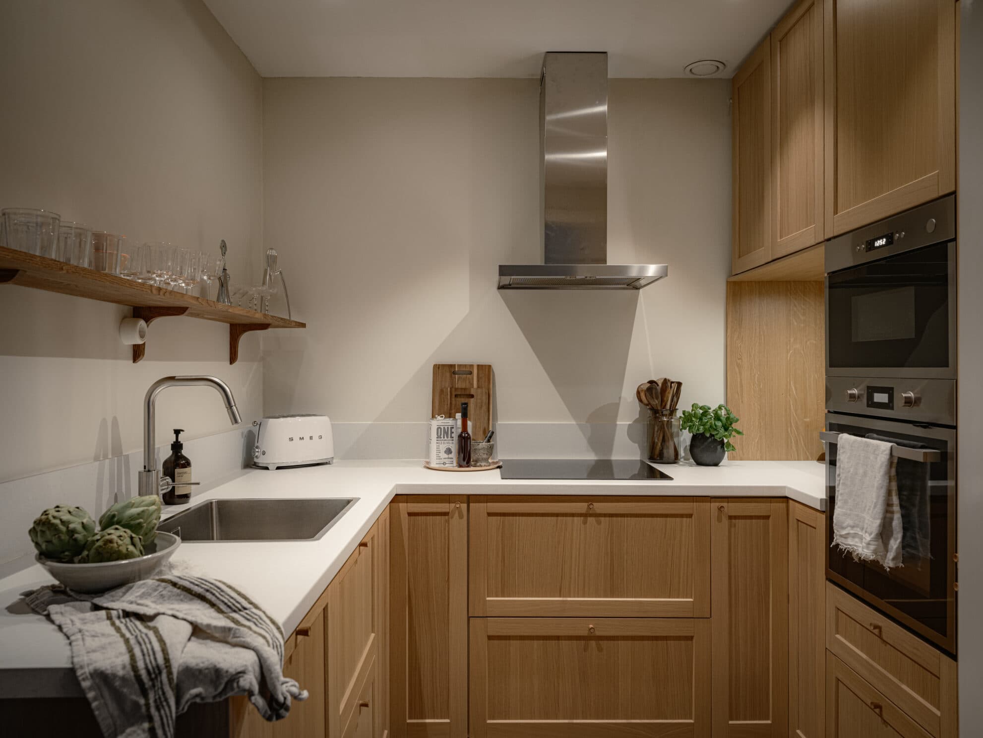 En mycket trivsam och varsamt renoverad minitvåa där varje materialval präglas av kvalitet och känsla. Under det senaste året har hemmet fått ett lyft som på ett fint sätt bevarar den äldre charmen samtidigt som moderna bekvämligheter tillförts. Den genomtänkta planlösningen bjuder in till både sociala middagar och avkopplande stunder. Här ryms utan problem ett generöst matsalsbord och en mysig soffhörna med tillhörande möblemang. Om natten kan du enkelt stänga de vackra dubbeldörrarna till sovrummet och skapa en avskild, rofylld del av hemmet. Det tidstypiska gör sig ständigt påmint med djupa fönsternischer, vackert ekparkettgolv, takhöjd som förstärker rymden och elegant rundade dörrkarmar. Tillsammans skapar det en harmonisk och karaktärsfull atmosfär.