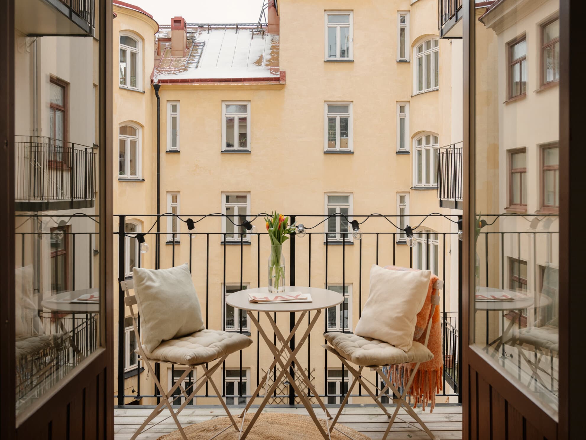 Charmig hörntvåa i gårdshus med vackra sekelskiftesdetaljer, två kakelugnar och balkong i söderläge