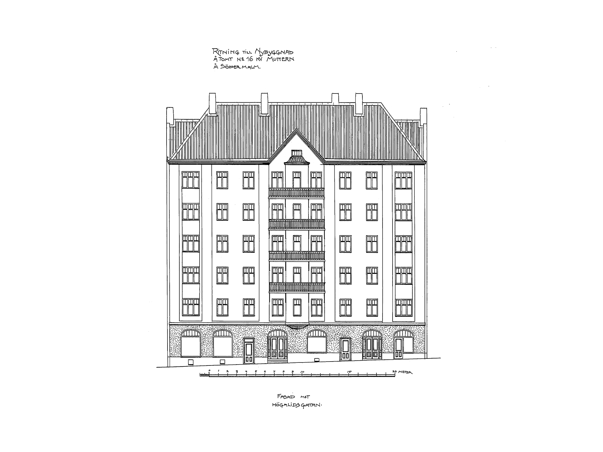 Muttern 16 är ett vackert exempel på tidens arkitekturideal. Mot gatan reser sig huset i sex våningar, medan gårdshuset omfattar fyra. Fasaden är slätputsad i en varm röd ton som samspelar fint med omgivningen – ett uttryck som är både stadsmässigt och mjukt, och som bär jugendepokens känsla för proportion, ljus och material.