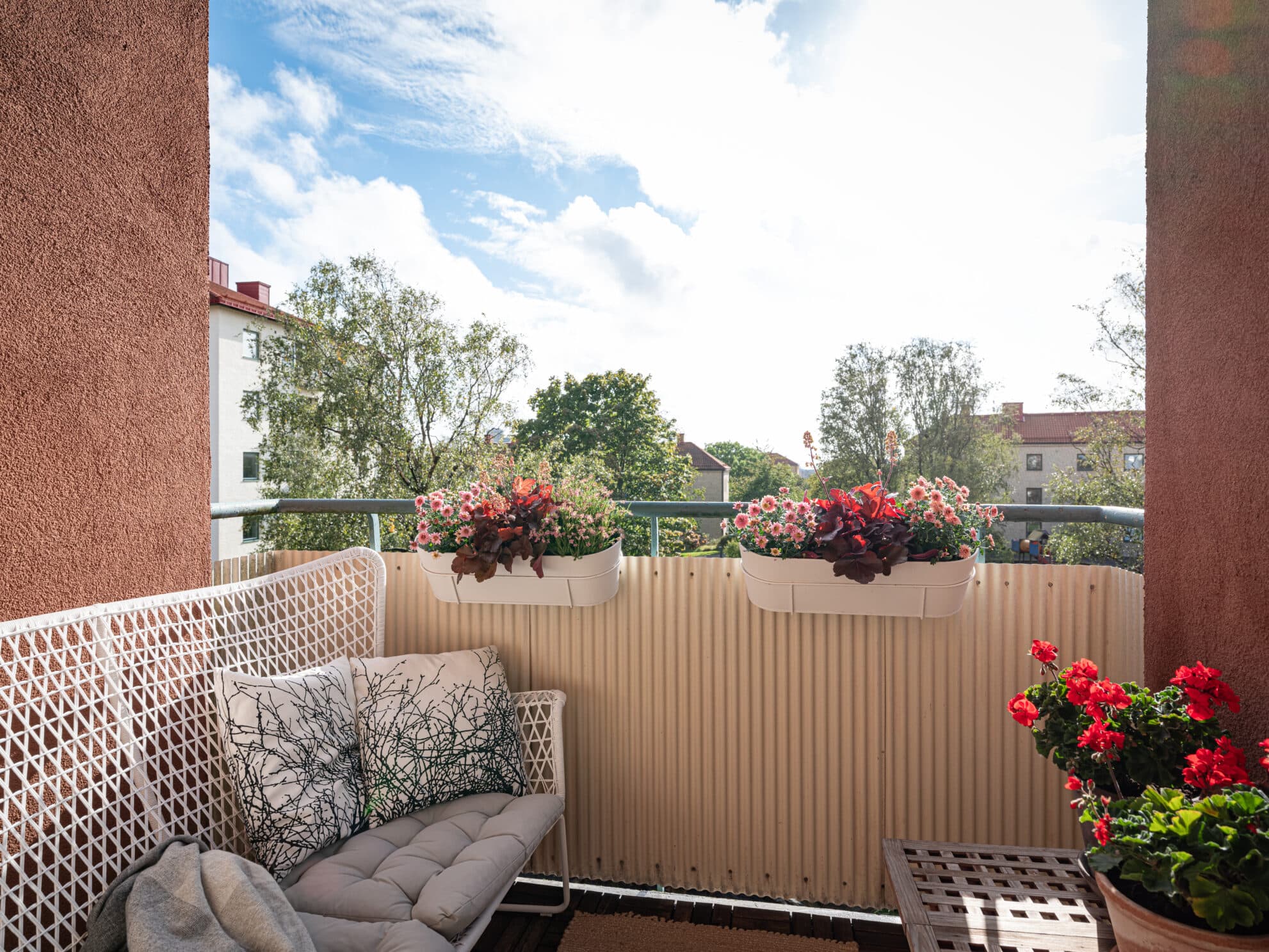 En fin 2,5:a som tack vare sin planlösning känns större än vad antalet kvadratmeter anger. Lägenheten ligger fritt på andra våningen (i hissen) utan insyn. Fönster i burspråk fyller vardagsrummet med ljus, och härifrån har man hänförande utsikt över området. Lägenheten är omsorgsfullt renoverad och har kvar sin 1940-talscharm. Fönstren är liksom kalkstensfönsterbänkarna, gjutjärnsradiatorerna, stavparketterna, köksskåpen och garderoberna i original från när huset byggdes och har blivit varsamt omhändertaget. Mycket trevligt läge i lugna Norra Guldheden med såväl Änggårdsbergen, Botaniska Trädgården och Slottsskogen som innerstadens puls inom kort promenadavstånd.