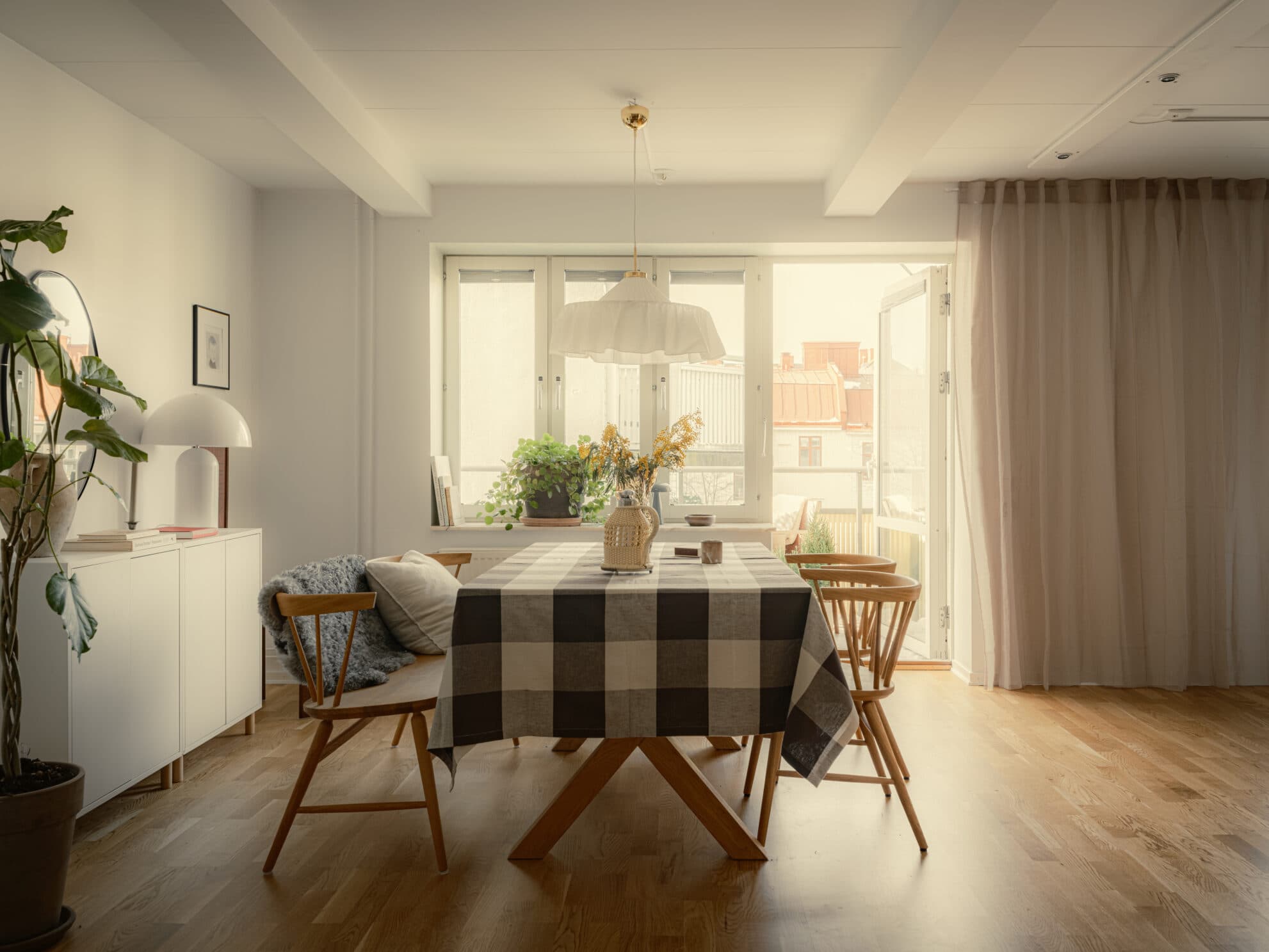 Lägenhetens vardagsrum erbjuder en ljus och luftig atmosfär och här får du med lätthet plats med både matplats och en mysig soffgrupp att samla nära och kära vid. Utgång till den rymliga balkongen som blir som ett extra rum under sommarhalvåret.