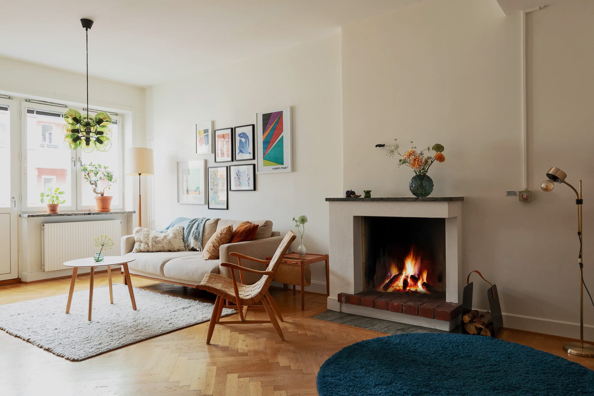 VARDAGSRUM: Ljust vardagsrum med vackert fiskbensparkettgolv och ljusa väggar. Här finns en fransk balkong ut mot lugna Möregatan. En fin öppen spis som fungerar bidrar också till en mycket härlig känsla.