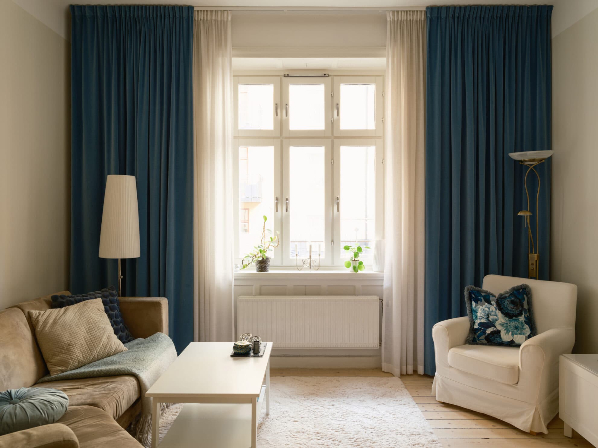 Sekelskifte med balkong och kakelugn, lugnt gårdshus