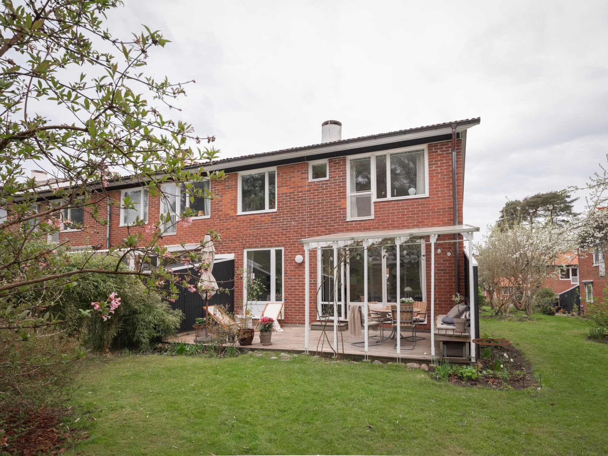 Välkommen till ett av de få friköpta radhusen i området – en sällsynt möjlighet för den som vill äga sin tomt fullt ut, utan tomträttsavgäld. Med sitt fördelaktiga läge längst in på gångvägen bjuder detta gavelradhus på en lugn och avskild tillvaro, omgärdad av grönska och med naturen som närmsta granne. På baksidan är det endast en gångväg som avskiljer tomten ifrån skogen som med dess porlande bäck skapar en rofylld och naturnära atmosfär. Invändigt präglas hemmet av ljus och rymd, med en genomgående öppen känsla och ett vackert ljusinsläpp från flera håll. Här samsas bevarade originaldetaljer med varsamt utvalda tidstypiska inslag som förstärker husets ursprungliga karaktär. Den fungerande öppna spisen i vardagsrummet ger både charm och värme, medan trappan, stavparketten i ek och de klassiska dörrarna vittnar om den höga kvalitet som kännetecknar bostadens ursprungliga utformning. Entréhallen välkomnar med tidstypiskt klinkergolv från Höganäs och originaldetaljer som fönster, entrédörr, altandörr och inbyggda garderober har bevarats för att ge hemmet dess unika karaktär. På senare år har även detaljer såsom knoppar, dörrhandtag och badrumsinredning valts med omsorg i tidstypiska modeller från Byggfabriken – en hyllning till husets arkitektoniska arv. Ett unikt och välbevarat radhus med själ och historia, perfekt för den som söker ett harmoniskt hem i en naturskön och rofylld miljö – samtidigt som man gör en trygg investering i en friköpt fastighet.