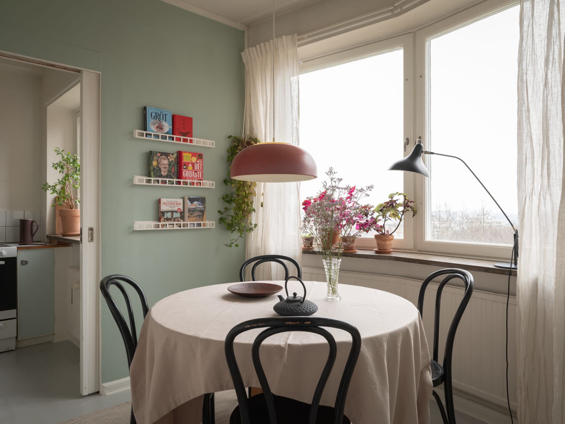 Synnerligen välbevarad 1940-talslägenhet med utsikt och eldningsbar öppen spis