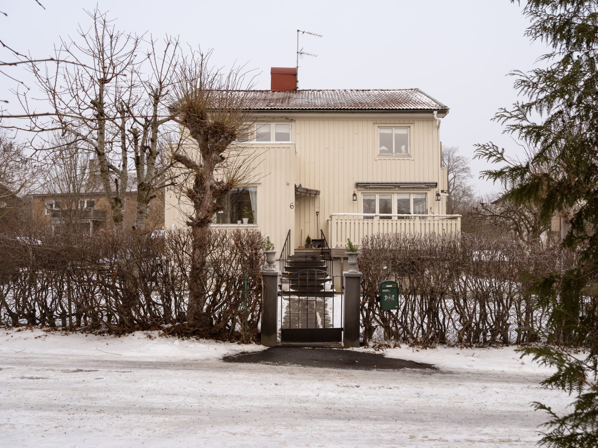 I mysiga Frölundaborg finner vi denna lika trivsamma som rymliga tvåfamiljsvilla från 1938. Huset består av två separata lägenheter om två plan vardera, så här finns möjlighet till samägande, generationsboende eller att finansiera en stor del av sitt eget boende genom uthyrning. Skicket är gott och de många bevarade originaldetaljerna – parkett, lister, spegeldörrar med mera – ger en charmig inramning. Båda lägenheterna har gott om sällskapsyta, och tack vare flera sovrum passar de perfekt för de lite större barnfamiljerna. Ljuset strömmar in, och under sommarhalvåret njuter man av solen på balkongerna, altanerna och de tre gnejsbelagda uteplatserna i trädgården som är som ett eget paradis med bland annat fruktträd, syrenträd och magnolia. Läget är perfekt och på kort promenadavstånd har man Änggårdsbergen, Botaniska trädgården, Slottsskogen och Mariaplan med ett sjudande kafé- och restaurangliv. Det är även nära till förskolor, grundskolor, Marklandsgatans kommunikationer och Axel Dahlströms torg med stort serviceutbud.