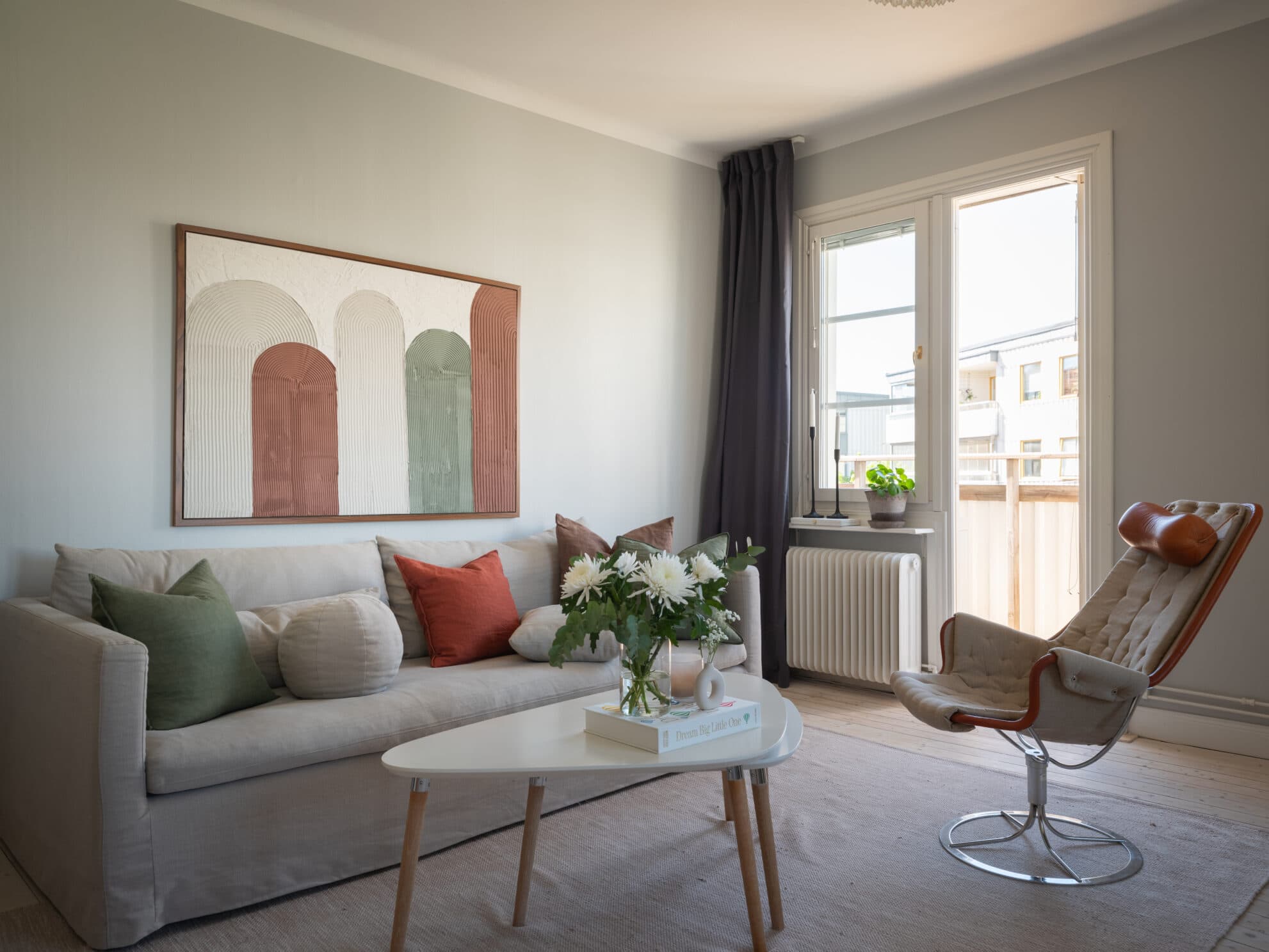 I Gamla Masthugget, ett stenkast från Slottsskogen, finner vi denna mysiga landshövdingehustrea. Lägenheten har bevarade spegeldörrar i originalutförande och i samtliga rum har plankgolven tagits fram. Köket renoverades 2019 och charmen i lägenheten har bevarats bl.a. med tidstypiska fönsterbeslag. Ett tyst och ostört boende med kök och vardagsrum i en öppen planlösning erbjuds och från balkongen njuter man av solen de flesta timmarna av dygnet. Lugnet till trots så ligger Linnéstaden med dess sjudande restaurang- och kaféliv bara en kort promenad bort. Huset uppfördes vid slutet av 1920-talet i en stram klassicistisk stil. Det ansluter till en stor, lummig och om sommaren flitigt använd innergård med grillar, utemöbler med mera. Föreningens medlemmar har även tillgång till bastu, samlingslokal och hobbyrum. Har man långväga besök finns det en övernattningslägenhet att hyra.