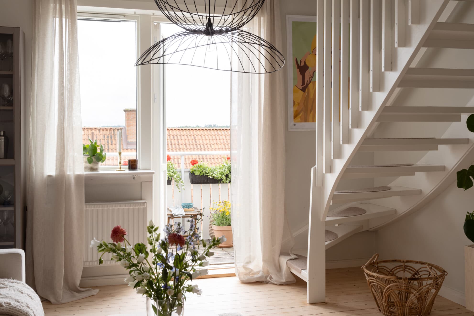 Luftigt vardagsrum som bjuder in till umgänge, och med plats för både soffgrupp och tillhörande möblemang. Ytterligare plats finns för tv-bänk, bokhylla med mera. Från vardagsrummet når du till den möblerbara balkongen med många soltimmar och vidsträckt utsikt över takåsarna.