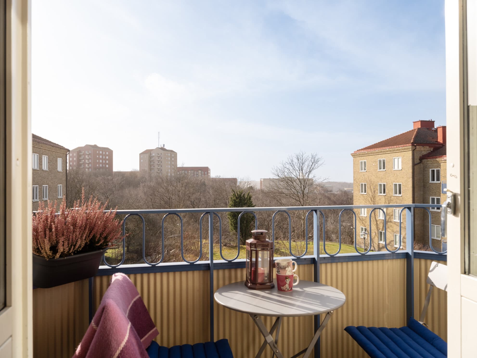 I mysiga Södra Guldheden finner vi denna underbara tvåa som badar i ljus. Lägenheten ligger högt och fritt, och den vidsträckta utsikten över skogar och bebyggelse är hänförande. Från balkongen, med många härliga soltimmar och solnedgångar, ser man ända bort mot Göteborgs hamninlopp. Rummen är lättmöblerade och i vardagsrummet, med fönster i två väderstreck, finns det plats för både soffa och matgrupp. I köket är det väl tilltaget med arbetsyta och förvaring och det bevarade originalköket är bara en av flera originaldetaljer som visar på bostadens karaktär och charm. Läget är perfekt och här erbjuds ett rofyllt boende med såväl Änggårdsbergens natur som innerstadens puls på kort promenadavstånd. Alldeles runt hörnet har man Doktor Fries torg med butiker, matställen och spårvagnshållplats, och det är även nära till Sahlgrenska och Chalmers. Det är en stabil bostadsförening vars goda ekonomi inte minst återspeglas i den låga månadsavgiften som inkluderar bredband.