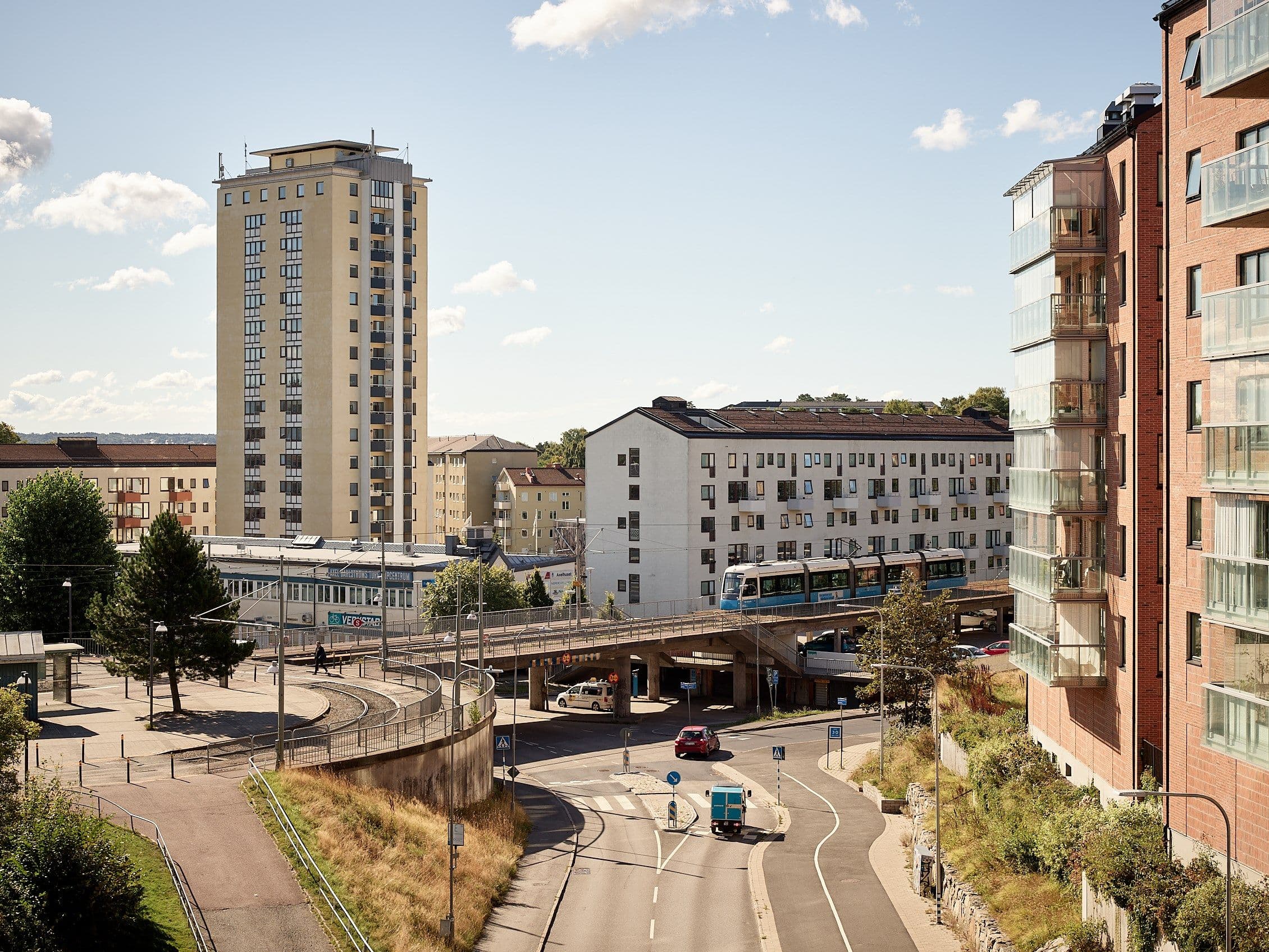 Axel Dahlströms Torg – ritat av arkitekterna S Brolid och J Wallinder och färdigställt 1955 – utgör ett mycket tidstypiskt inslag. Torget är fortfarande levande och idag finns här ICA Supermarket, fiskbil, bageri, apotek, gym, bank, skomakeri, juvelerare, frisörsalonger, sushibar, thairestaurang, cykelaffär, garnaffär, klädaffär, hälskostaffär, kulturhus med bibliotek och hållplats för flera spårvagnslinjer.